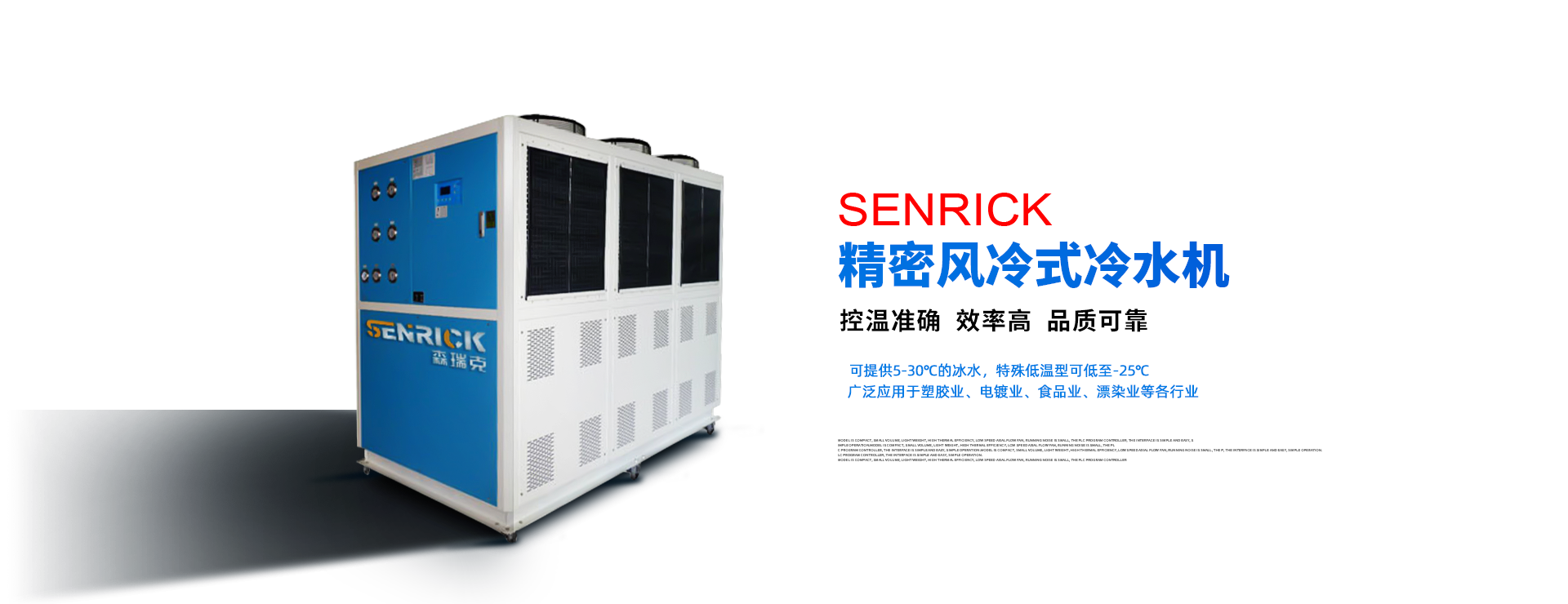 工業冷水機是一種通過蒸汽壓縮或吸收式循環達到制冷效果的機器。工業冷水機的工作原理是:先向機內水箱注入量的水,通過冷水機制冷系統將水冷卻,然后再由水泵將低溫冷卻水送入需冷卻的設備,冷水機冷卻水將熱量帶走后溫度升高再回流到水箱,從而達到冷卻的作用。冷卻水的溫度可根據要求自動調節。